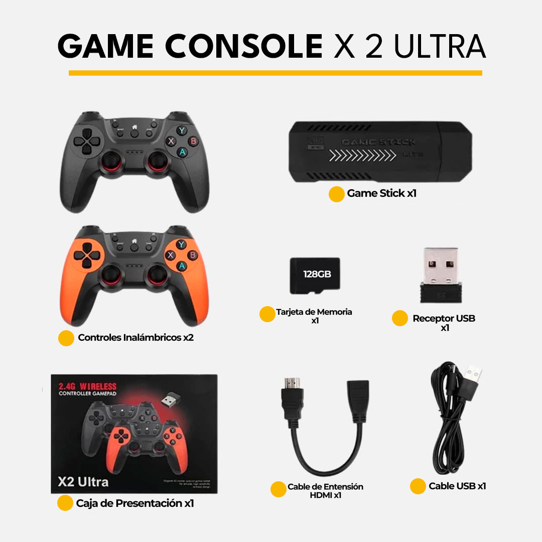 X2 Ultra Retro Game Stick 4K, consola de videojuegos Plug and Play con 128 G/40000+juegos, salida HDMI para TV con driver inalámbrico 2.4G, emuladores retro Arcade para niños y adultos