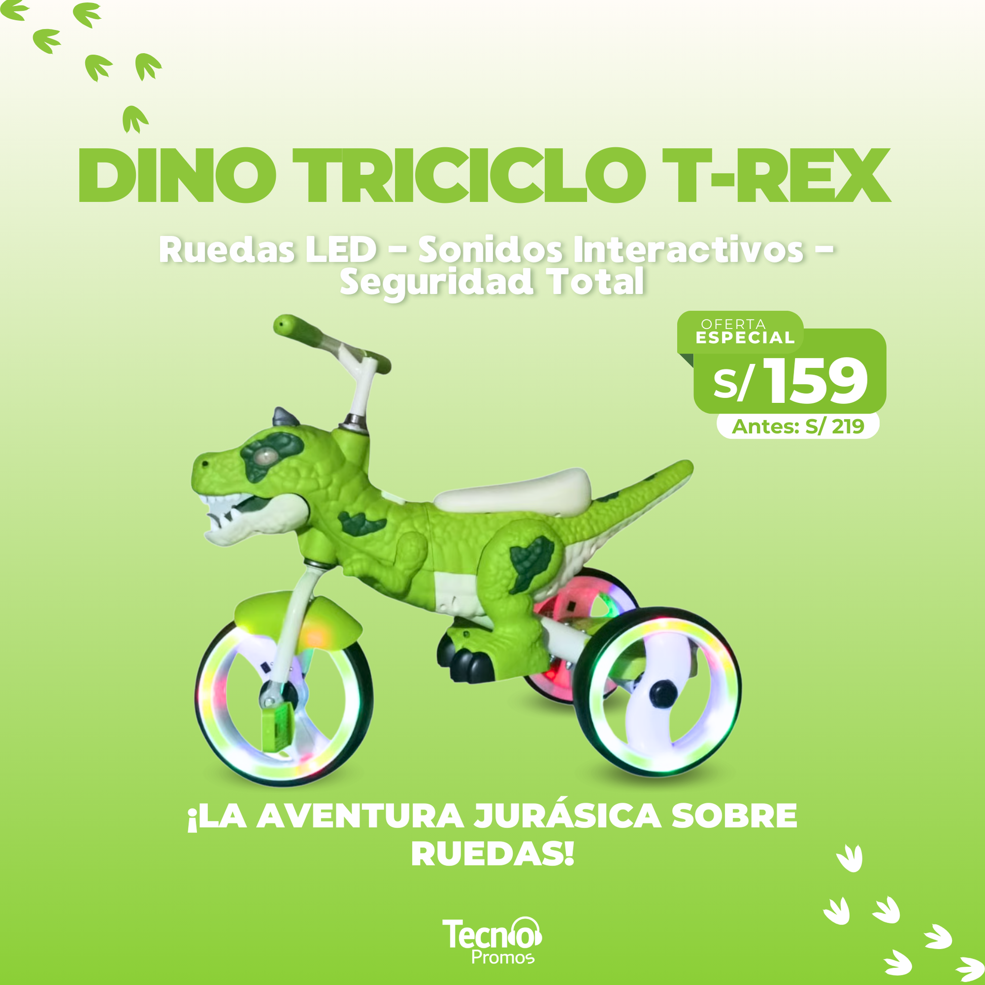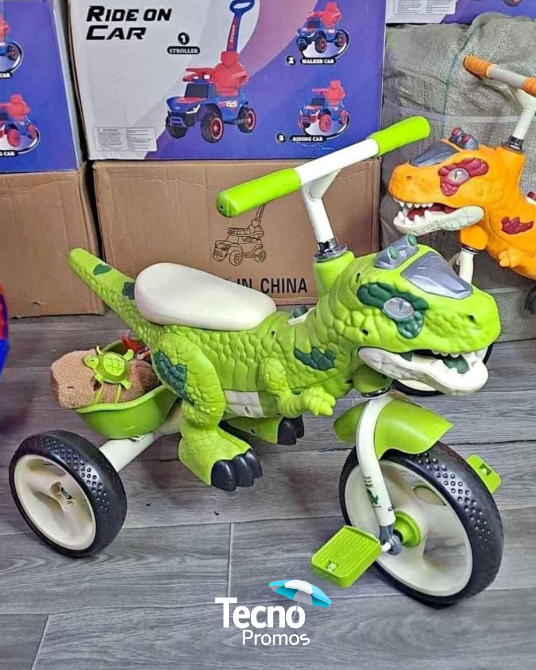 ¡Convierte cada paseo en una aventura prehistórica con el Triciclo Dino T-Rex ! Diseñado para niños de 1 a 6 años , este triciclo no solo ofrece estabilidad y seguridad, sino también una experiencia llena de diversión con luces y sonidos que harán que tu pequeño se sienta en la era de los dinosaurios.